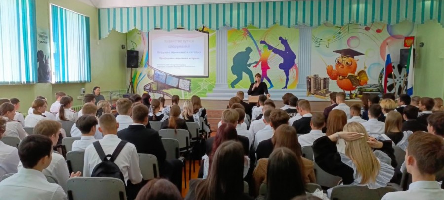 Сегодня в рамках занятий внеурочной деятельности "Россия - мои горизонты" начальник отдела кадров Комсомольской дистанции пути Неведомская Елена Викторовна провела профориентационную беседу для обучающихся 9-11 классов нашей школы.